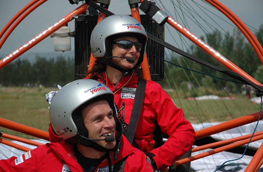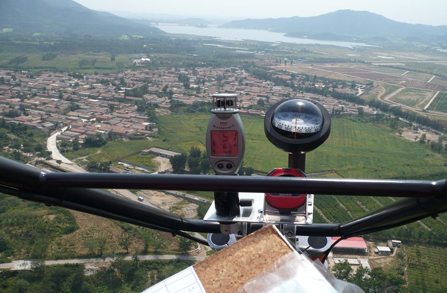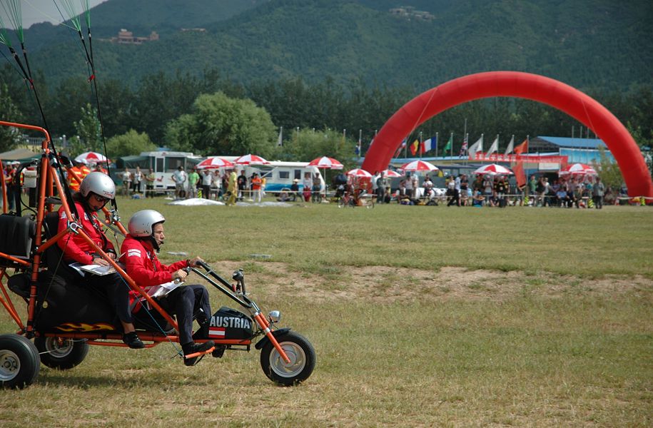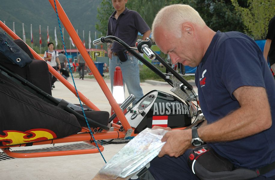 Bereits um 4 Uhr in der Früh meldete sich der Weckdienst und eine halbe Stunde später brachten uns die Shuttlebusse bereits zum Wettkampfareal, wo nach dem Frühstück das Teamleader-Briefing stattfand. Ab 6 Uhr konnten wir uns mit der heutigen Flugaufgabe auseinandersetzen. Es ging darum, in einem Zeitfenster von 60 Minuten so viele auf der Karte vordefinierte Punkte (Turn Points) wie möglich zu erfliegen. Die Wendepunkte wurden den Piloten auf einer Liste ausgehändigt. Diese mussten erst auf der Karte erst identifiziert und entsprechend verzeichnet werden. Der Schwerpunkt der Vorbereitungsarbeit lag in der Definition der Reihenfolge, in der die Wendepunkte – innert 60 Minuten mit der größtmöglichsten Distanz - abgeflogen werden. Dabei sind die Eigengeschwindigkeit des Fluggerätes und die vorherrschende Windgeschwindigkeit ein maßgeblicher Berehnungsfaktor. Bei so einer Aufgabe kann man natürlich auf Sicherheit gehen oder riskieren, indem man die Flugzeit bei den Berechnungen bis zum Ende ausreizt und sich verschiedene Varianten erarbeitet. Uns war klar, dass nur die zweite Variante in Frage kam, weil wir bei dieser Aufgabe die Möglichkeit haben viele Punkte einzufliegen. Die Flugplanung nutzten wir bis zur letzten Minute aus und starteten um 10 Uhr als eines der letzten Teams unseren ersten WM-Task. Das 4 km entfernte Ming-Grab, Startgate und Finishpoint zugleich, und unsere Flughöhe von 800m hatten wir bald erreicht. Problemlos und sogar mit einem Zeitvorsprung umflogen wir die ersten Wendepunkte. Eine bzw. mehrere Schrecksekunden hatten wir dann genau über der 600000 Einwohnerstadt Chang Ping, als plötzlich der Motor ausging. Das Problem war aber dann doch schnell gelöst. Durch ein Versehen hatte ich beim Fotografieren der Wendepunkte den Notausschalter angestoßen. Da wir beim Wieder-Startversuch bereits einiges an Höhe verloren und am Stadtrandgebiet die Notlandefelder kaum vorhanden waren, mussten wir uns nach diesem Schreck erst wieder auf den richtigen Kurs zurück orientieren. Dadurch hatten wir einige Zeit verloren. Zudem kam noch dazu, dass beim Versuch den Flugzeugmotor wieder zum Laufen zu bringen, der Wind mir einen Grossteil meiner Flugplanungsunterlagen vom Kartenhalter riss. Trotzdem Allem wir aber weiter gut in der Zeit und so riskierten wir einen zusätzlichen Wendepunkt zu nehmen, bevor wir den Kurs Richtung Ziel einschlugen. Aber da die Turbulenzen und der Wind jetzt um die Mittagszeit ziemlich zugenommen hatten, wurde auch unser Zieleinflug zum Sekundenkrimi. 10 Sekunden vor dem Ende unseres Zeitfensters überföogen wir dann laut unserer Stoppuhr wieder das Ming-Grab. Nach der Landung brachte unser Teamleader Hello Haas gleich das versiegelte Kontroll-GPS ins Wettkampfbüro. Hier werden unsere Flugdaten ausgelesen, wobei überprüft wird, ob wir alle Wendepunkte im Radius von 400m richtig passiert haben und ob die festgesetzte Zeit von 60 Minuten von uns nicht überschritten wurde. Da die Auswertung von über 100 GPS sehr zeitaufwendig ist, stand die Ergebnisliste am Ende des Tages noch nicht fest. Aber für den morgigen Tag wurden die nächsten beiden Task bereits festgelegt. So warten wir nun gespannt auf das Teamleaderbriefing, welches für morgen um 7 Uhr angesetzt ist. Den heutigen Nachmittag haben wir noch für ein Shopping in der chinesischen „Kleinstadt“ Chang Ping - Austragungsort der Triathlonwettbewerbe bei den olympischen Spielen 2008 - genutzt. |